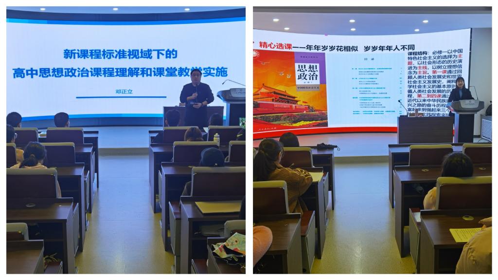 10月25日至26日,best365英国官网邀请西安市教科院高中思政课教研员邓正立,西安市经开区第一中学教师尚姝君在红色讲堂分别为学院师生作题为《新课程标准下的高中思想政治课程理解和课堂教学实践》的学术报告和题为《一节优质课的前世今生》的示范教研。学院教师、研究生、本科生共100余人参加。