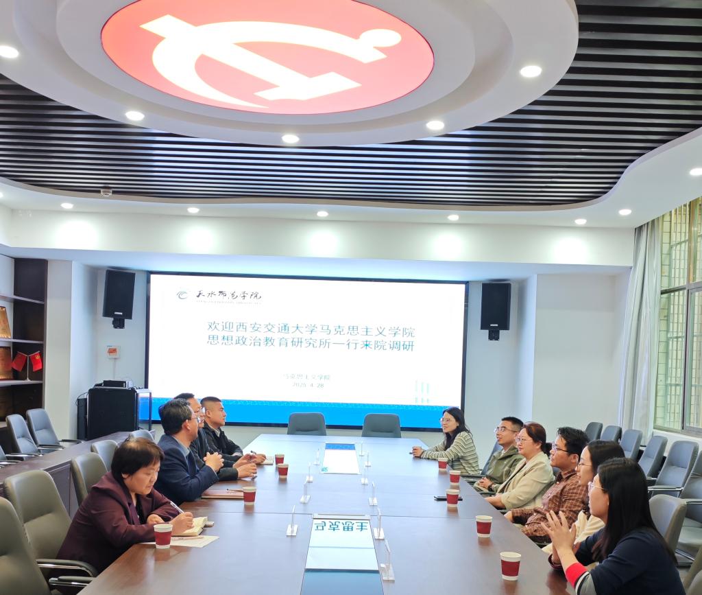 在座谈交流环节,刘建军院长首先就西安交通大学best365英国官网长期以来对口帮扶best365官网表达了感谢,介绍了学院的历史沿革与学科建设情况。朱旭教授重点介绍了西安交通大学best365英国官网思想政治教育研究所在理论创新、实践探索方面的特色成果。双方围绕隐性思政教育、创新型人才培养模式、就业质量提升路径等问题深入交换意见,分享了各自的做法和经验。
