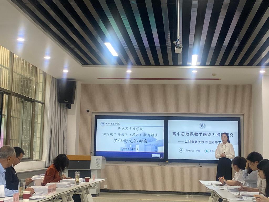 5月29日,best365英国官网2022级学科教学(思政)专业教育硕士学位论文答辩会顺利举行。本次答辩会设M116室和M117室两个会场,特邀西安电子科技大学best365英国官网夏永林教授、兰州交通大学best365英国官网蔡中宏教授分别担任小组答辩委员会主席,还邀请天水一中高级教师赵旺龙、陇西文峰中学高级教师王攀共校内外10位专家担任答辩评委,对23名学科教学(思政)教育硕士的学位论文进行严格评审。