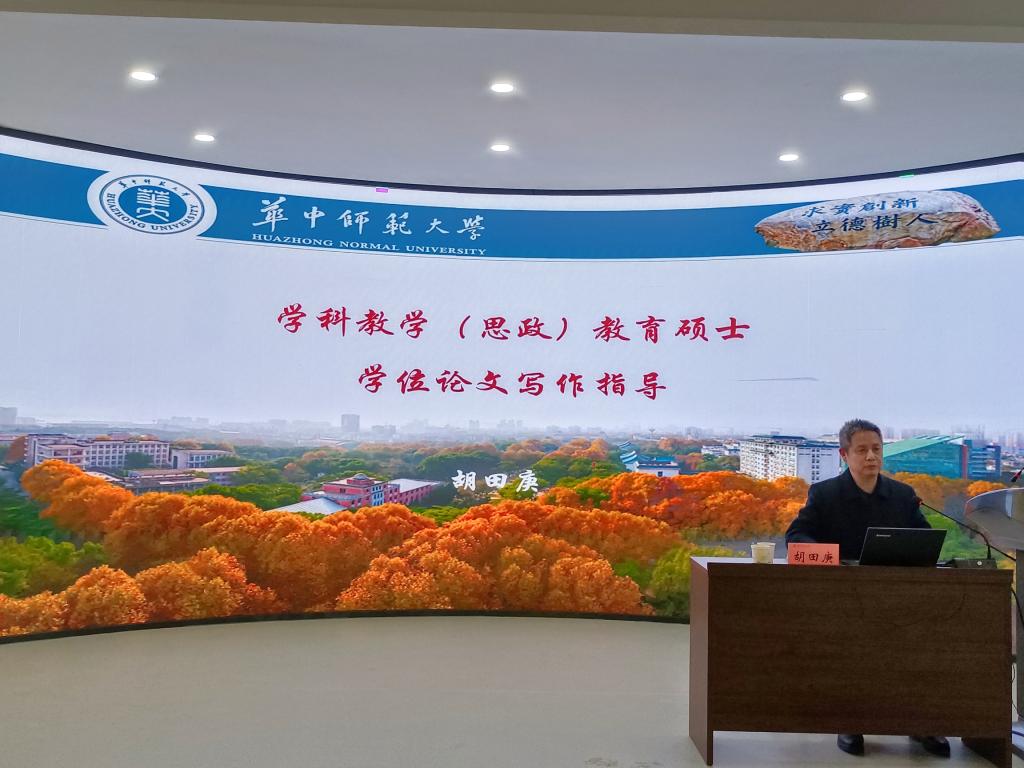 为进一步提高best365官网研究生教学研究能力和学位论文写作水平,12月5日,学院邀请华中师范大学best365英国官网学科教学(思政)专业学位负责人胡田庚教授作了题为“学科教学(思政)教育硕士学位论文写作指导”的讲座。讲座由学院党委书记刘建军主持,研究生导师和全体研究生共90余人聆听了讲座。