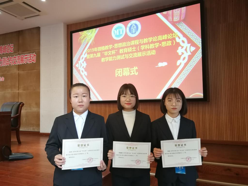 2018级教育硕士在第九届“华文杯”教育硕士(学科教学·思政)教学能力测试与交流展示活动中获一、二、三等奖