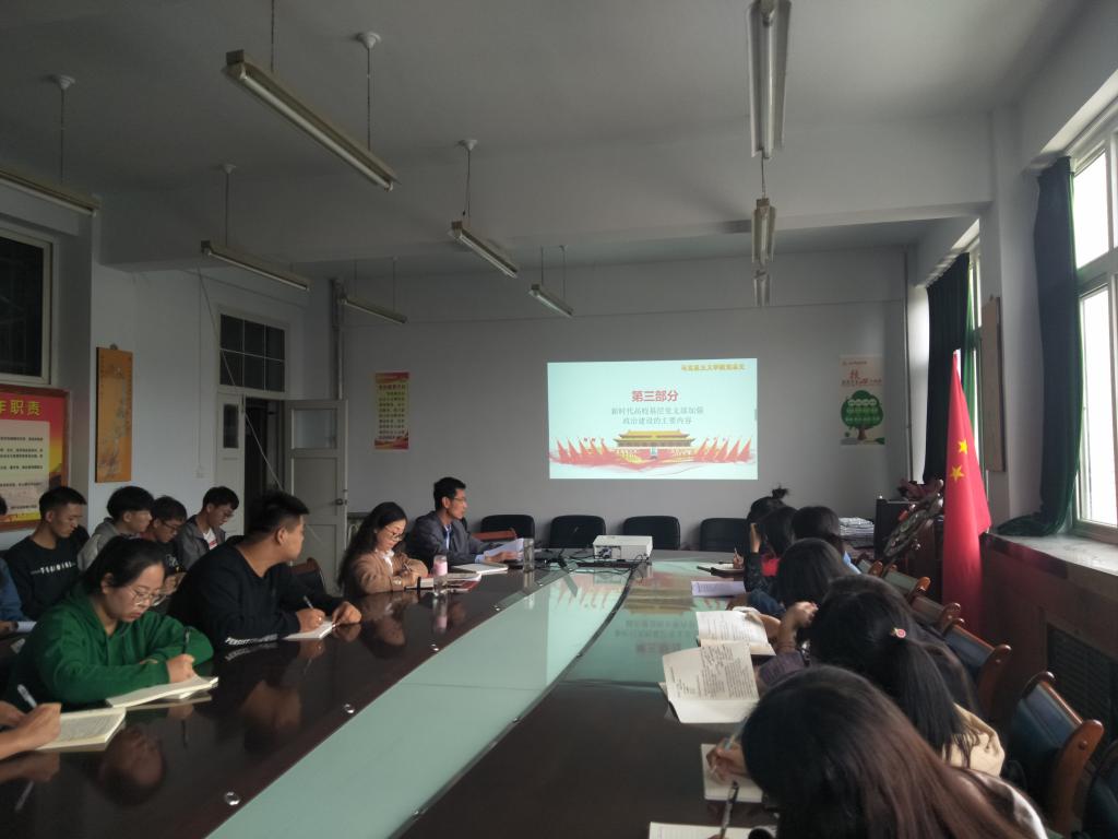 9月19日下午,在全校上下开展“不忘初心、牢记使命”主题教育的背景下,按照校党委的安排,best365英国官网党总支书记刘志林在2号教学楼413会议室召开了主题教育的动员大会并给学生党员及入党积极分子上党课。