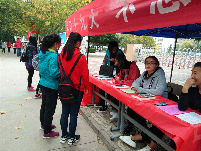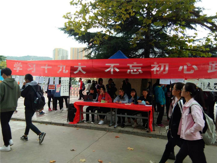 为响应学校号召,唱响时代主旋律,学习党的十九大的内容,best365官网于2017年10月23日在东操场门口举办了以“学习十九大 不忘初心跟党走”的主题宣传活动。此次活动主要通过: