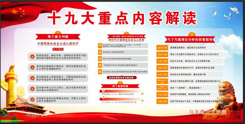 2.海报宣传和发放传单。通过海报,展板,传单,进一步解读十九大,让同学们深刻认识到,我党举什么旗、走什么路、以什么样的精神状态、担负什么样的历史使命、实现什么样的奋斗目标,并为此提出怎样行动纲领等方面的内容;