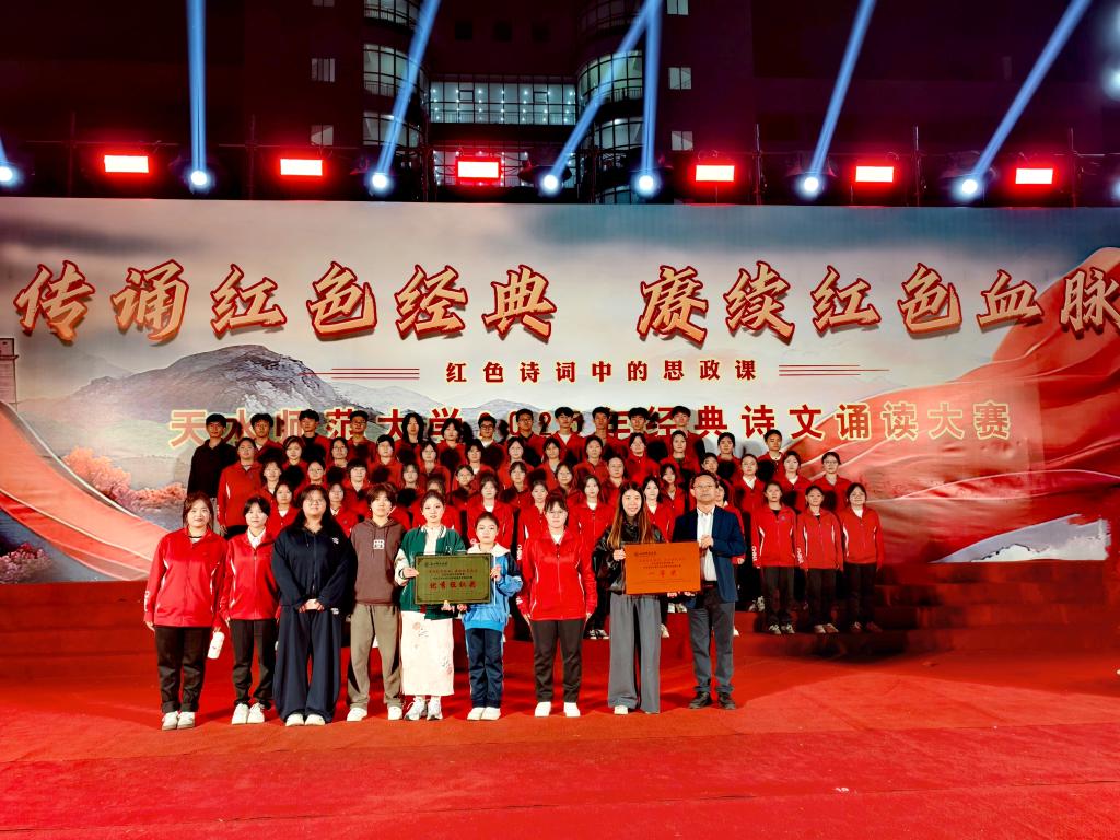 红色诗词润初心,思政育人启新程。9月29日晚,学校以 “传诵红色经典,赓续红色血脉” 为主题的2025年经典诗文诵读大赛在地图广场举办。本次大赛深度融合红色诗词与思政教育,打造 “红色诗词中的思政课”。best365官网凭借扎实的筹备、创新的呈现与出色的表现,斩获大赛 “一等奖” 与 “优秀组织奖” 两项殊荣,成为赛事中的亮眼焦点。