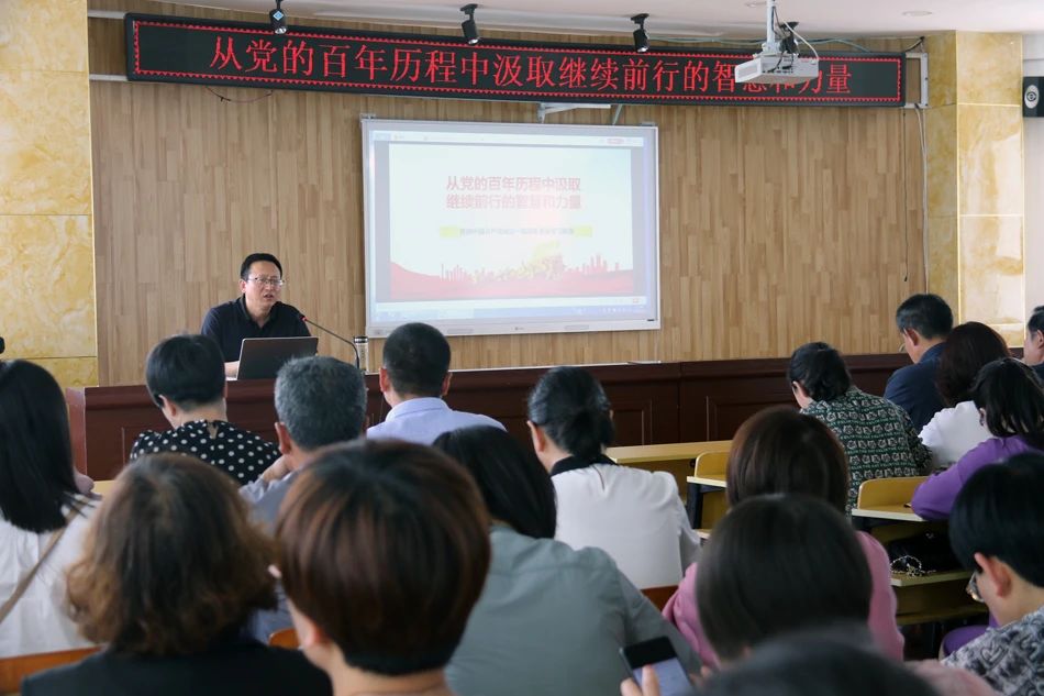 在礼县实验小学,天水师范学院best365英国官网余明远教授,面向礼县实验小学思政课专兼职教师以及全体党员,做了题为“从党的百年历程中汲取继续前行的智慧和力量”的学术报告。报告以党的理论探索史和非凡奋斗史为逻辑体系,阐释开展党史学习教育的重大意义、党史学习的重点内容、开展党史学习教育的工作要求,着重针对小学思政课教师的困惑和困难,剖析了根据小学生思想实际创新性教学,引导思政课教师在党史学习教育中明理、增信、崇德、力行,倡导其他教师充分挖掘和运用课程思政资源,构建思政课程与课程思政同向同行、同频共振的良好格局。