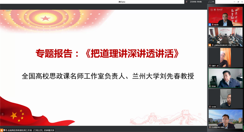 5月15日,由教育部全国高校思政课刘先春名师工作室、兰州大学best365英国官网主办,天水师范学院best365英国官网、甘肃民族师范学院best365英国官网、陇南师范高等专科学校best365英国官网、兰州科技职业学院、菏泽学院best365英国官网、黔东南民族职业技术学院马列主义教研部参与组织的“学习贯彻习近平总书记考察中国人民大学重要讲话精神暨教育部全国高校思政课名师工作室(兰州大学-刘先春)2022年第一期集体备课会”召开,会议采取线下与线上相结合的方式进行,由兰州大学best365英国官网副院长杨志超主持。