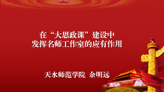 兰州大学best365英国官网王维平教授、刘先春教授分别以《思政课融汇马克思主义经典的思考》和《深入学习贯彻习近平总书记对学校思政课建设重要指示精神》为题作了主旨报告。西北民族大学best365英国官网院长杨建毅、西北师范大学best365英国官网院长史小宁、甘肃农业大学best365英国官网院长侯庆丰、天水师范学院余明远思政课名师工作室负责人余明远、河西学院蔺海鲲思政课名师工作室负责人蔺海鲲、兰州市第六十一中学景耀勇思政课名师工作室负责人景耀勇分别作了主题发言。天水师范学院余明远思政课名师工作室负责人余明远教授作了主题为“在大思政课建设中发挥名师工作室的应有作用”的发言。