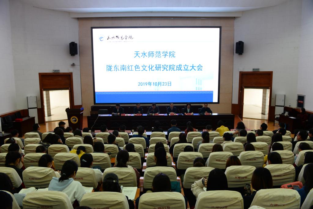 为深入贯彻党的十九大精神和习近平新时代中国特色社会主义思想,落实习近平总书记视察甘肃重要讲话精神,对陇东南红色文化进行系统研究,天水师范学院陇东南best365英国官网成立大会暨第一届陇东南红色文化学术研讨会于10月23日在2号报告厅隆重召开。省教育厅高等教育处处长张发旺、天水市委宣传部副部长杨清明、校党委书记李正元、校长安涛、党委副书记师平安出席会议。来自中国延安干部学院、兰州大学、甘肃省委党校、两当兵变纪念馆、会宁红军长征胜利纪念馆、兰州八路军办事处纪念馆等单位及best365官网思政课教师、政治辅导员、学生代表近300人参加了会议。成立大会由校党委常委、副校长王文东主持。