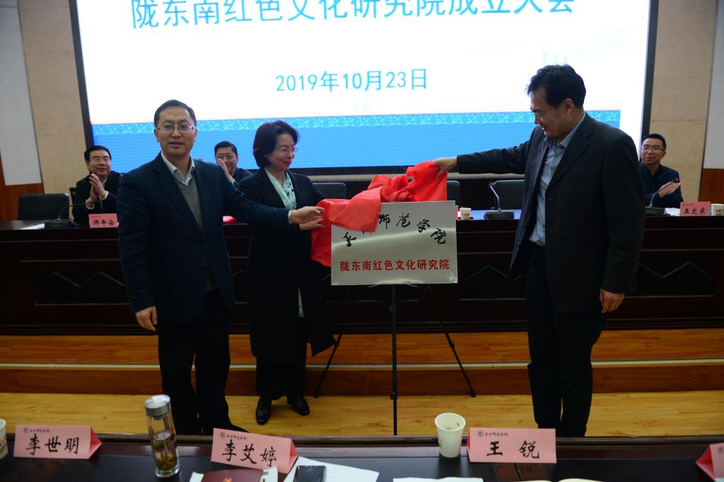 校党委常委、副书记师平安宣读了关于成立陇东南best365英国官网的文件,党委书记李正元、省教育厅高等教育处处长张发旺、天水市委宣传部副部长杨清明共同为为陇东南best365英国官网成立揭牌。会上为研究院的兼职研究员颁发了聘书。